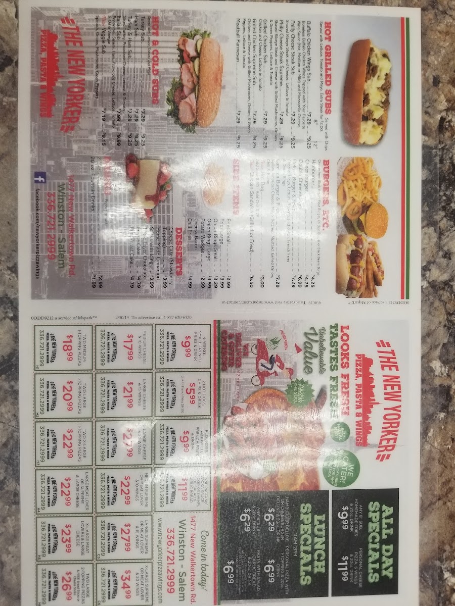 Welcome to The New Yorker Pizza Wings & Pasta, a culinary gem nestled in Winston-Salem, NC. This vibrant eatery boasts a delightful menu featuring mouthwatering pizzas, succulent wings, and delicious pasta dishes that cater to diverse palates.